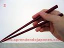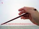 - Com os dedos indicador, médio e polegar, segure o pauzinho de cima. É mais ou menos como segurar uma caneta